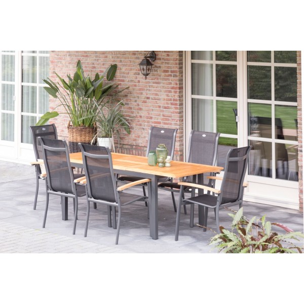 Zahradní křeslo Hartman ALICE má pevnou hliníkovou konstrukci s výpletem z umělé tkaniny, je odolné vůči vodě i slunečnímu záření a jeho údržba je velmi snadná. Textílie je vypnuta do rámu kostry a je z vysoce pevné, umělé tkaniny zvané Textilen. Tato tkanina je stálobarevná, nedráždí pokožku, je absolutně nenasákavá a odolná proti mechanickému poškození. Područky jsou vyrobeny z pěkného odolného teakového dřeva. Křeslo je lehké a snadno ho přenesete pro lepší odpočinek na zahradě, terase nebo přímo u bazénu.