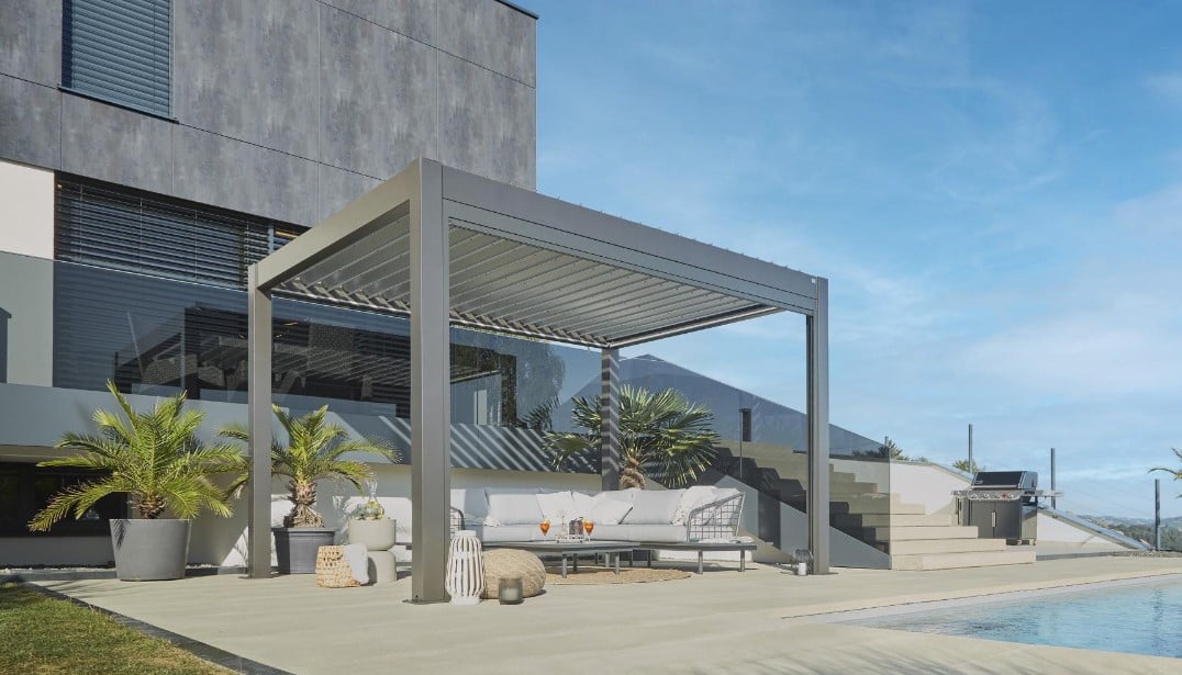 Chladivý komfort – pergola vyzařuje méně tepla, i když svítí slunce.