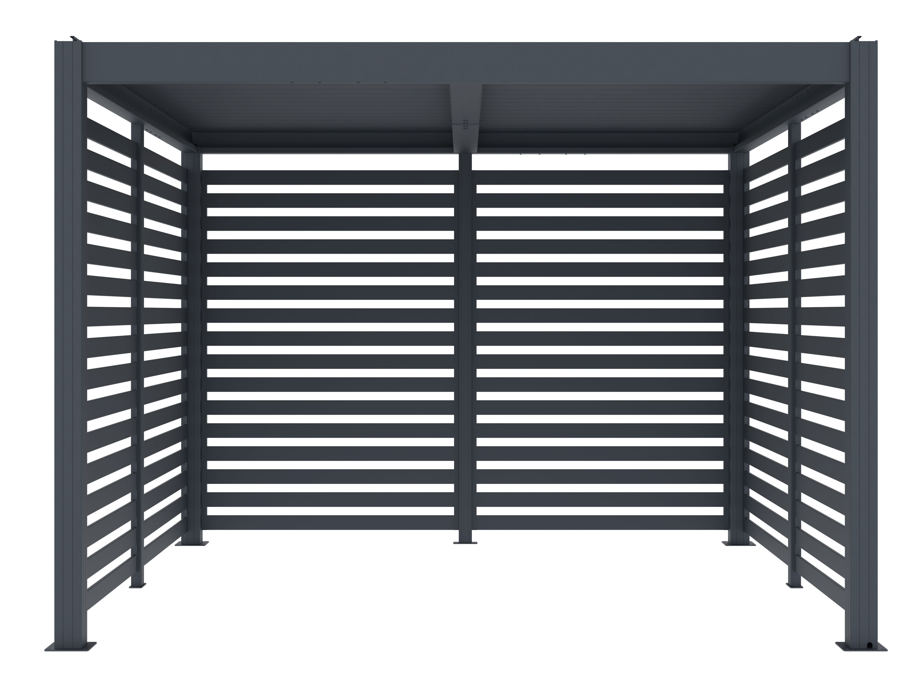 Stěna je vyrobena z kvalitního hliníku, který odolává povětrnostním vlivům, nevyžaduje složitou údržbu a má dlouhou životnost. Elegantní antracitová barva perfektně ladí s pergolou Austin a doplní vzhled vaší zahrady či terasy.
