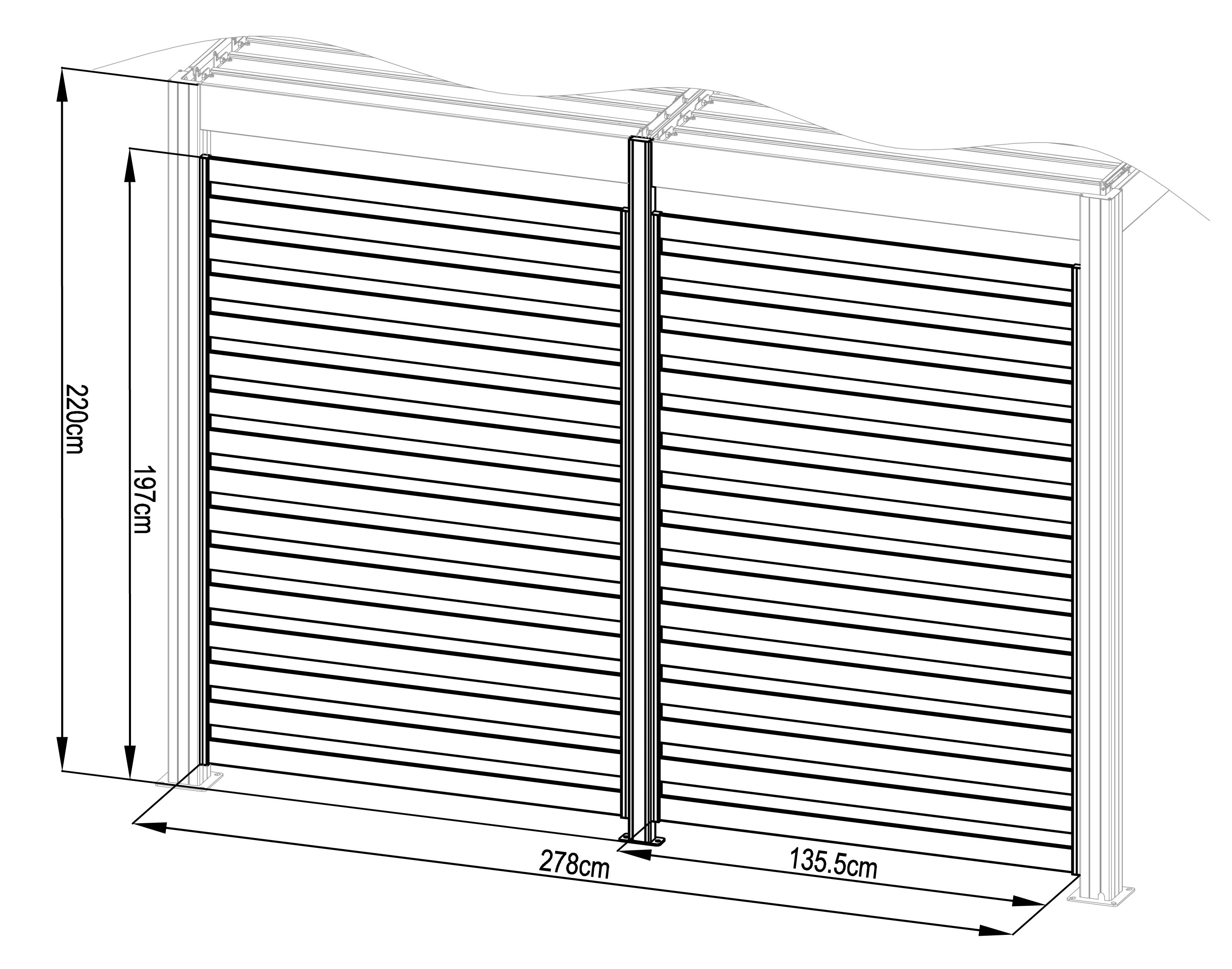 Stěna je určena pro boční montáž na pergolu Austin o rozměrech 3×3 nebo 4×3 m. Montáž je rychlá a nenáročná, přičemž konstrukce perfektně sedí a drží i při silnějším větru.
