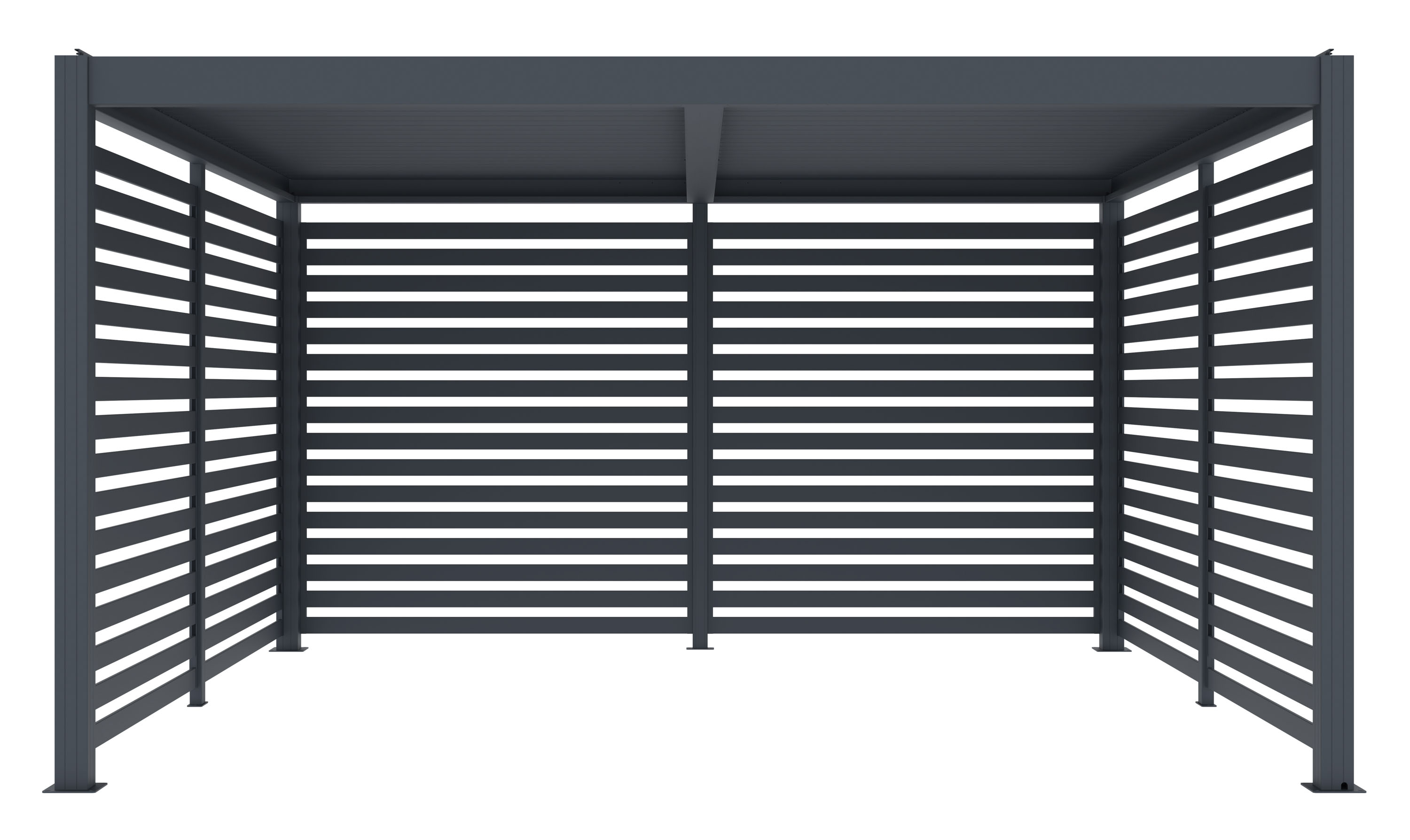 Stěna je vyrobena z kvalitního hliníku, který odolává povětrnostním vlivům, nevyžaduje složitou údržbu a má dlouhou životnost. Elegantní antracitová barva perfektně ladí s pergolou Austin a doplní vzhled vaší zahrady či terasy.