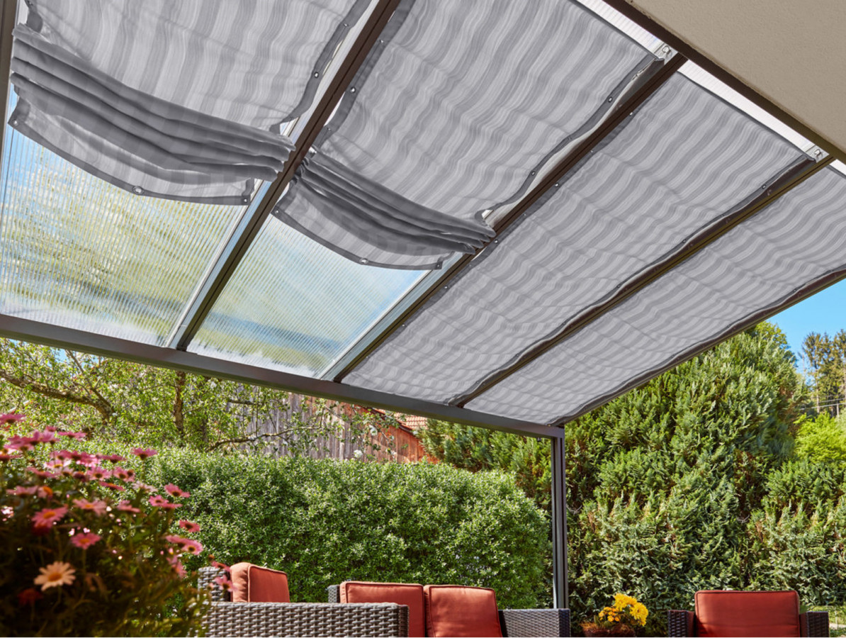 Variabilní a efektivní zastínění k pergole Terrassendach Premium vám poskytne komfortní pobyt pod pergolou. Příslušenství z nerezové oceli zajistí dlouhodobou životnost.