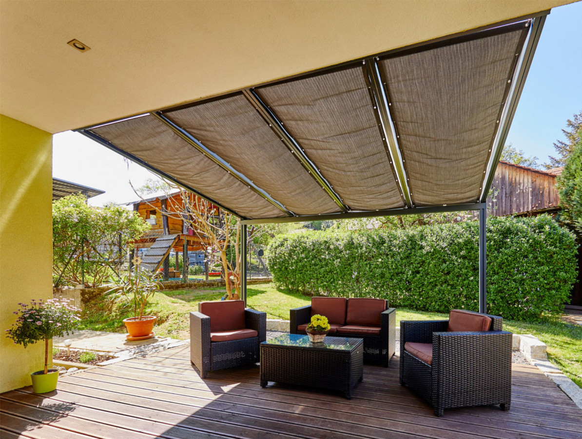 Variabilní a efektivní zastínění k pergole Terrassendach Premium vám poskytne komfortní pobyt pod pergolou. Příslušenství z nerezové oceli zajistí dlouhodobou životnost.