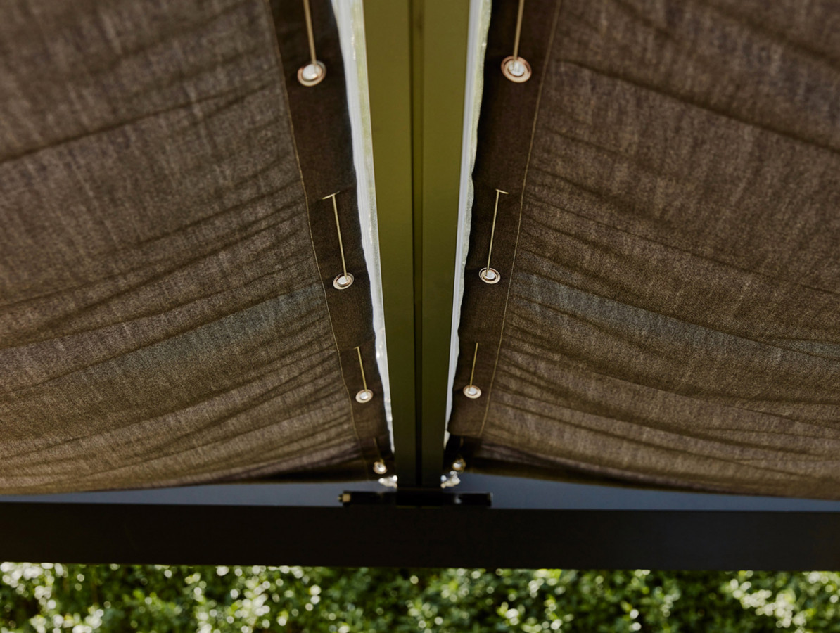 Můžete vybírat ze čtyř barevných variant pro hloubky pergol 3 m, 4 m a 5 m.