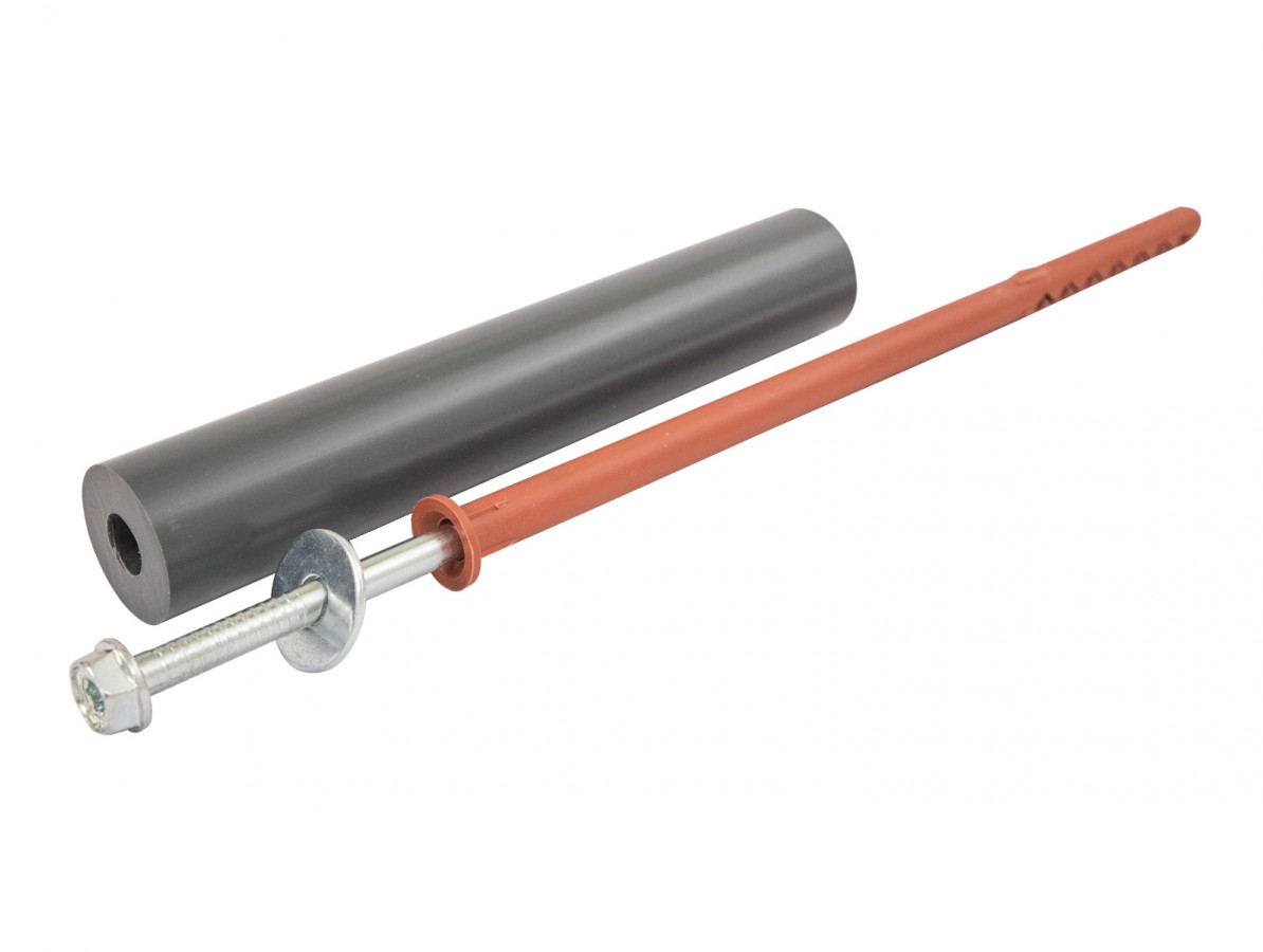 Upevňovací set pro vchodové stříšky nebo pergoly je vhodný na zateplené fasády s vnější izolací do 20 cm. Určený pro montáž do betonu, či jiných plných zdiv. Díky PVC podpěře se váha stříšky může opřít přímo o zdivo a ne o zateplení. Vymezovací válec má průměr 4 cm. Není vhodný pro Porobeton!
