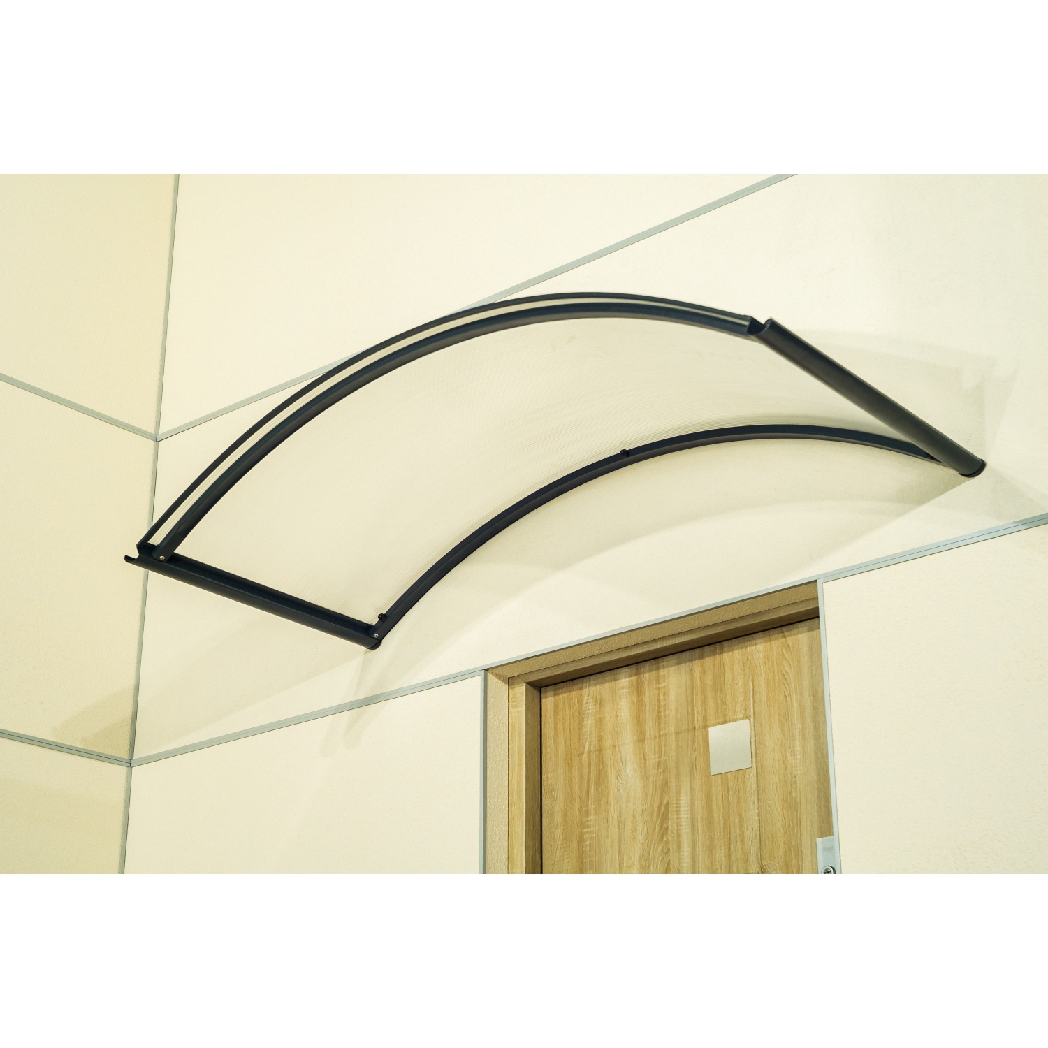 Oblouková stříška TOPAZ 130 x 70 cm, jednoduchá a elegantní vchodová stříška je dokonalou ochranou Vašich dveří před deštěm, sněhem a větrem. Lehké zastřešení připravené k samostatné montáži bez potřeby použití dodatečných pomocných podpěr.