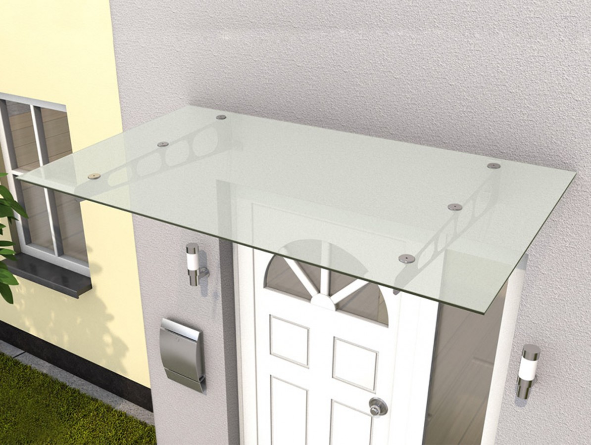 Moderní rovná stříška nad vchodové dveře Guttavordach HD/LT 160 × 90 cm zkrášlí prostor vstupu do vašeho domu a současně je dokonalou ochranou vašich dveří před deštěm, sněhem a větrem. Je vhodná pro zastřešení vchodů, balkonů, výloh obchodů, nebo například pro zastřešení nad bankomaty.