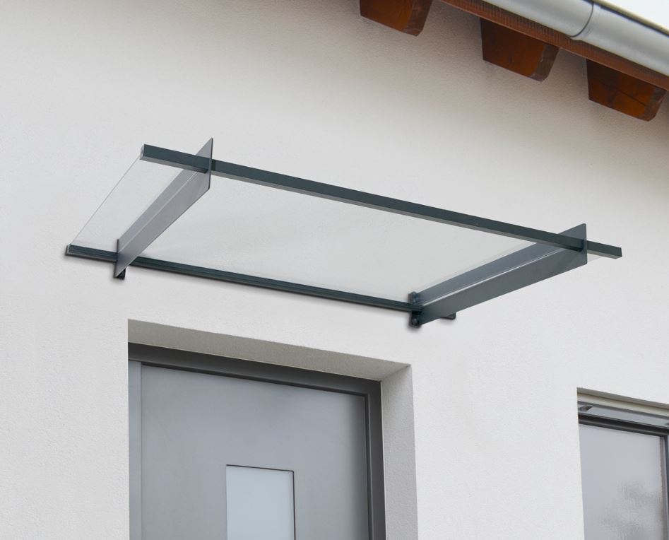 Pultová stříška Nancy 1500, jednoduchá a elegantní vchodová stříška je dokonalou ochranou dveří před deštěm, sněhem a větrem. Lehké zastřešení připravené k samostatné montáži bez potřeby použití dodatečných pomocných podpěr. Odolné nerezové hliníkové profily. Práškově lakované a pozinkované ocelové podpěry. Tvar předního profilu i zadní skryté těsnění zajišťují při dešti odvod vody do bočních stran.