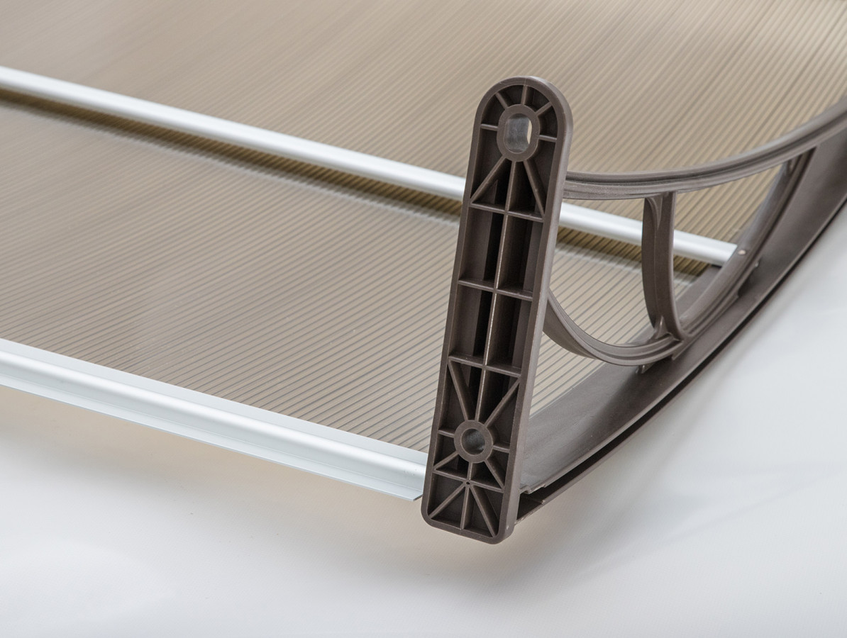 Stříška má nosné konzole vyrobené z pevnostního kopolymeru bílé barvy. Výplň je vyrobena z kvalitního dutinkového polykarbonátu Guttagliss Dual Box o síle 6 mm. Zakončovací lišty jsou vyrobené z eloxovaného hliníku. Vchodové stříšky Valtellina jsou kvalitním italským výrobkem vyznačující se dlouhou životností a vysokou odolností proti krupobití.