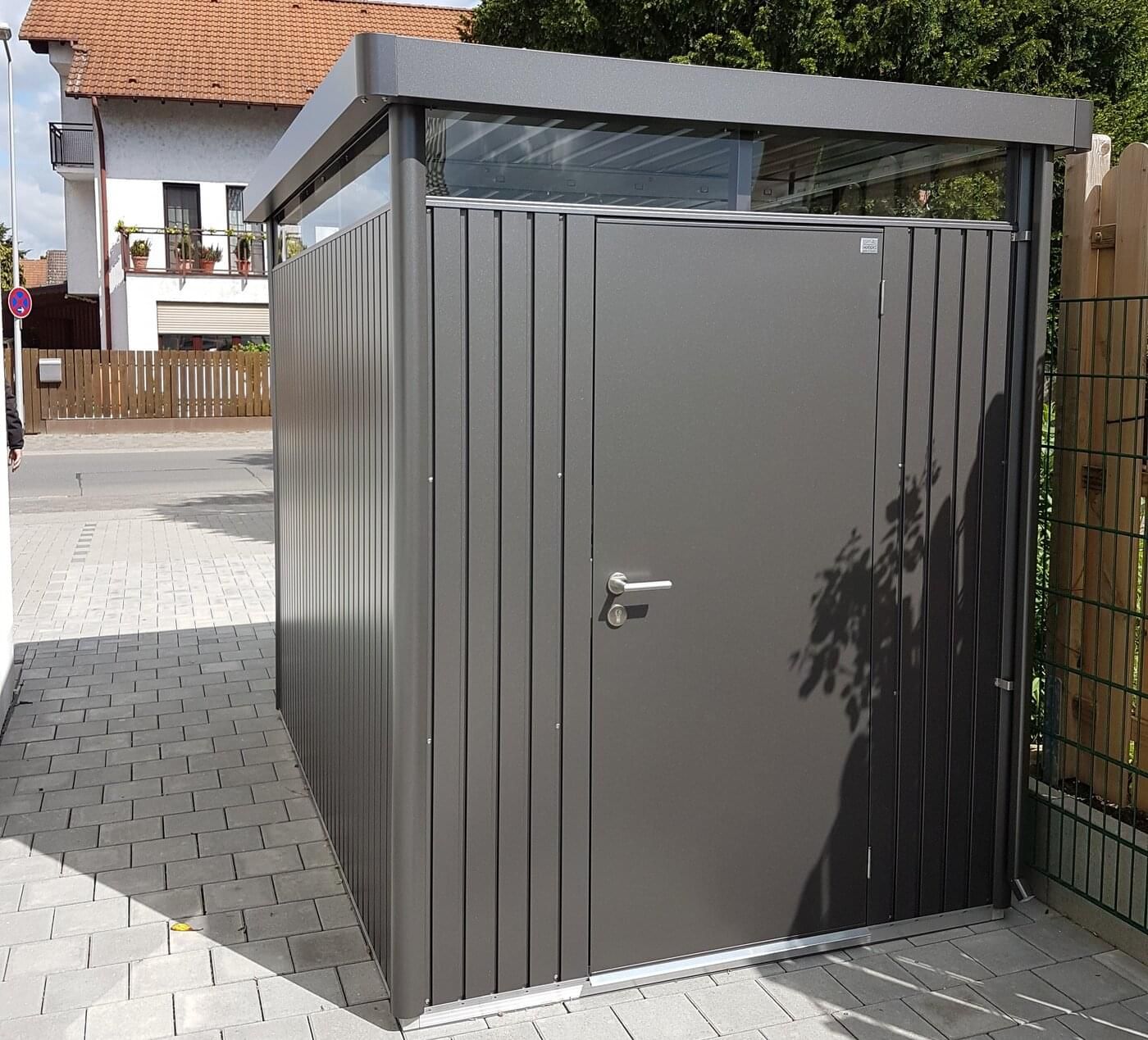 Nemáte kam uskladnit jízdní kola, potřeby k bazénu, zahradní sekačku s nářadím a další věci, které se nevejdou do domu, ale chcete je mít pod střechou a bezpečně pod zámkem? Pořiďte si stylový kovový domek na nářadí HigthLine HS prémiové kvality s pultovou střechou, který vyhovuje i nárokům moderní architektury. Domek je široký 155 cm (přední strana s dveřmi) a 275 cm dlouhý(včetně přesahu střechy). Domky HighLine nabízíme ve třech barevných provedeních a pěti velikostech.
