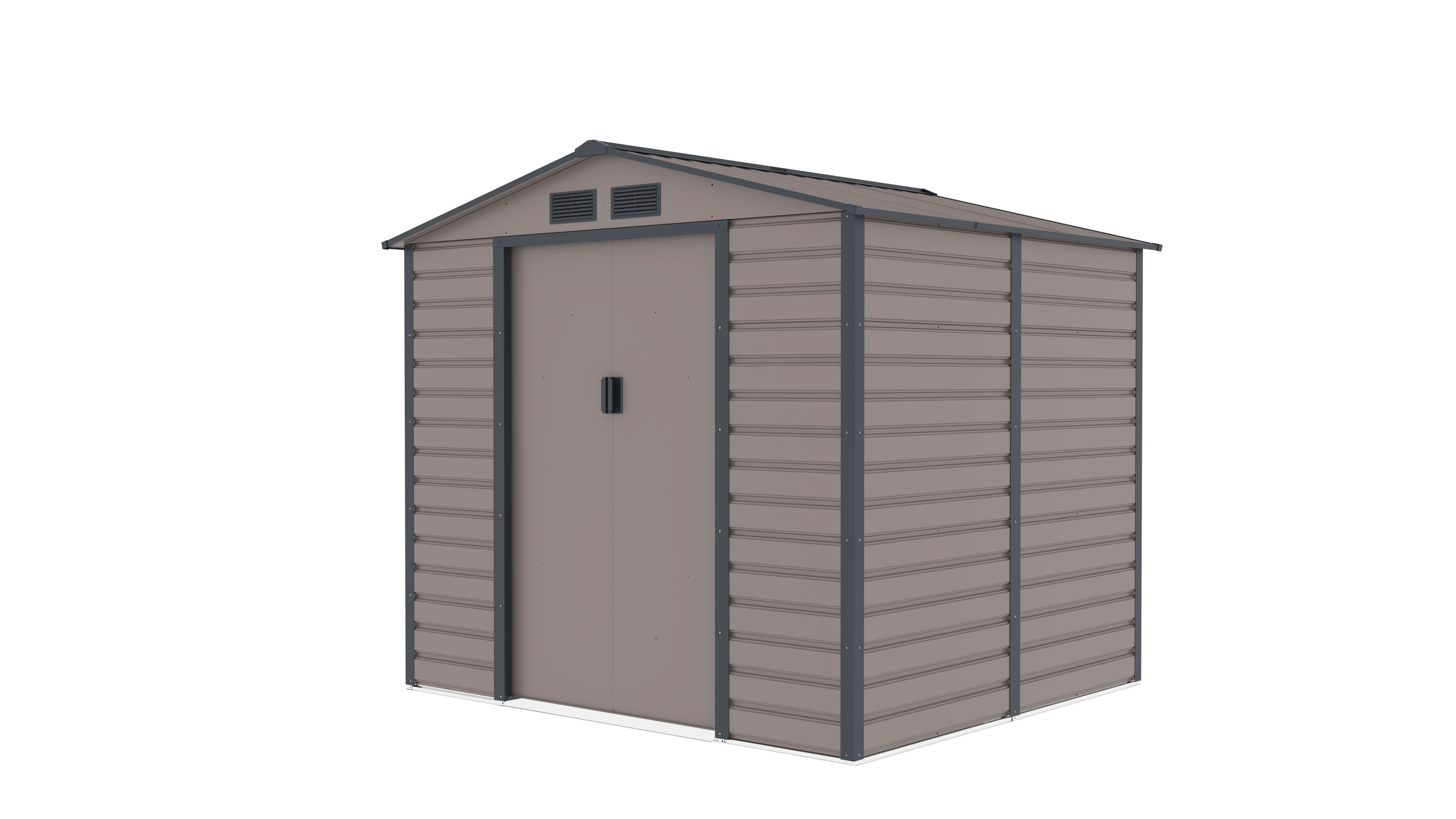 Montáž domku je velmi jednoduchá. Doporučujeme jej instalovat na velkoformátovou dlažbu nebo na betonový základ. Na pevný pozinkovaný rám přimontujete ocelový, pozinkovaný plech s práškovým nástřikem, který je odolný vůči špatnému počasí. Součástí balení jsou také dveřní úchyty. Šířka přední strany činí 213 cm, výška v nejvyšším bodě je 190 cm a šířka boční strany je 191 cm. Výška boční stěny bez střechy je 163 cm. Na přední straně se nachází posuvné dveře. Součástí je také přehledný návod na montáž, podle kterého lze snadno postupovat. Naleznete jen také výše v dokumentech ke stažení.
