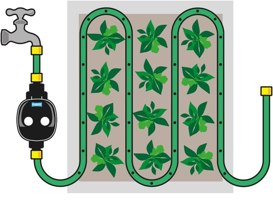 K časovači můžete připojit jakýkoliv typ kapkové závlahy, kterou lze použít ve skleníku, na záhonech nebo jednotlivých pěstebních nádobách.