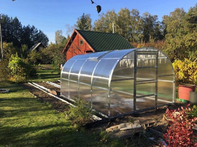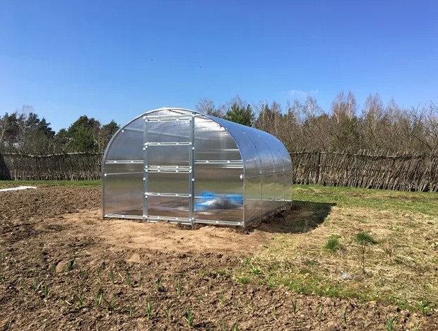 Zasklení skleníku je tvořeno čirým dutinkovým (komůrkovým) polykarbonátem o tloušťce 4 mm s UV ochranou, který má zvýšené tepelně izolační vlastnosti, oproti běžně prodávaným skleníkům. Polykarbonát splňuje veškeré podmínky zdravotní nezávadnosti. Na polykarbonát máte prodlouženou záruku v délce 3 let proti poškození krupobitím.