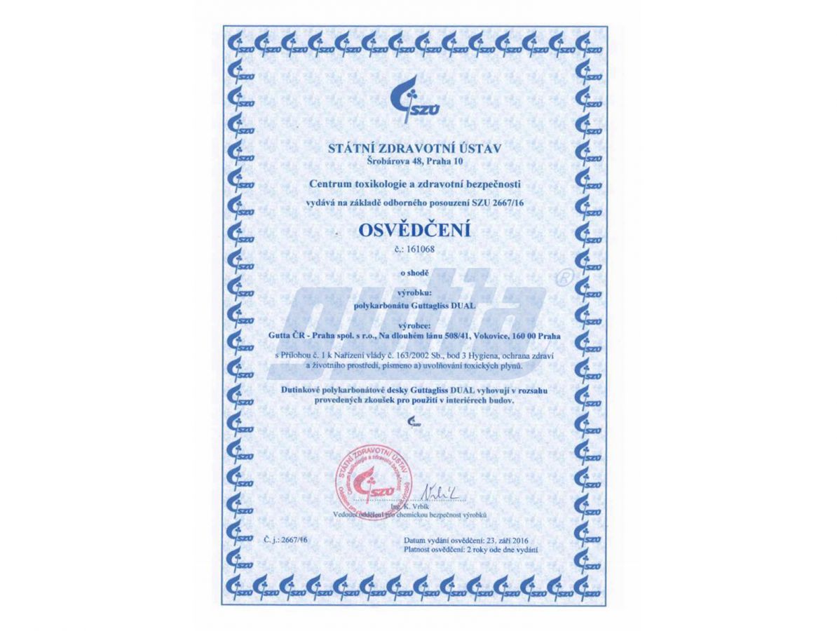 Zdravotně nezávadný polykarbonát Guttagliss s certifikací SZÚ
