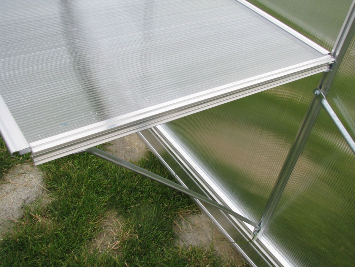 Zasklení skleníku je tvořeno čirým dutinkovým (komůrkovým) polykarbonátem o tloušťce 6 mm s UV ochranou, který má zvýšené tepelně izolační vlastnosti oproti běžně prodávaným skleníkům. Polykarbonát splňuje veškeré podmínky zdravotní nezávadnosti.