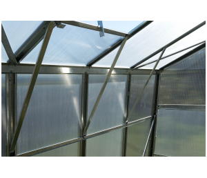 Ke skleníku si můžete dokoupit automatický otvírač střešního okna, díky kterému ušetříte čas, jelikož se okno bude otevírat samo podle teploty uvnitř skleníku a nehrozí tak jeho přehřátí v horkých letních dnech.