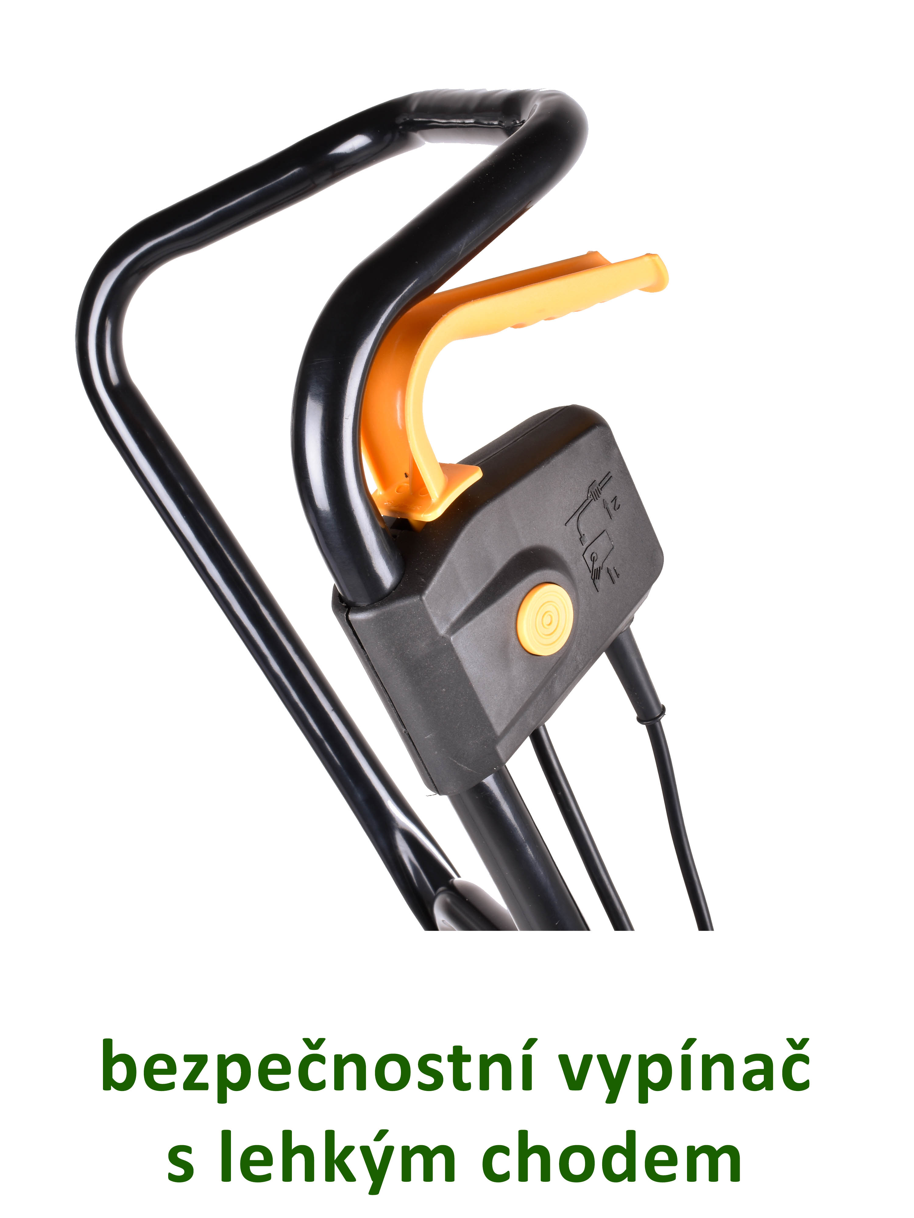 Kultivátor je poháněn elektromotorem o příkonu 750 W. Motor je vybaven bezpečnostním vypínačem s lehkým chodem a tepelnou pojistkou která chrání motor proti poškození přehřátím. Tichý chod motoru neruší hlukem ani v hustě zastavěných prostorech. Kultivátor má odolnou kovovou převodovku. Důležitým bezpečnostním prvkem je dvojitá izolace kovových částí pro vaši maximální bezpečnost. Stroj se velmi snadno obsluhuje a práci s ním hravě zvládnou i ženy.