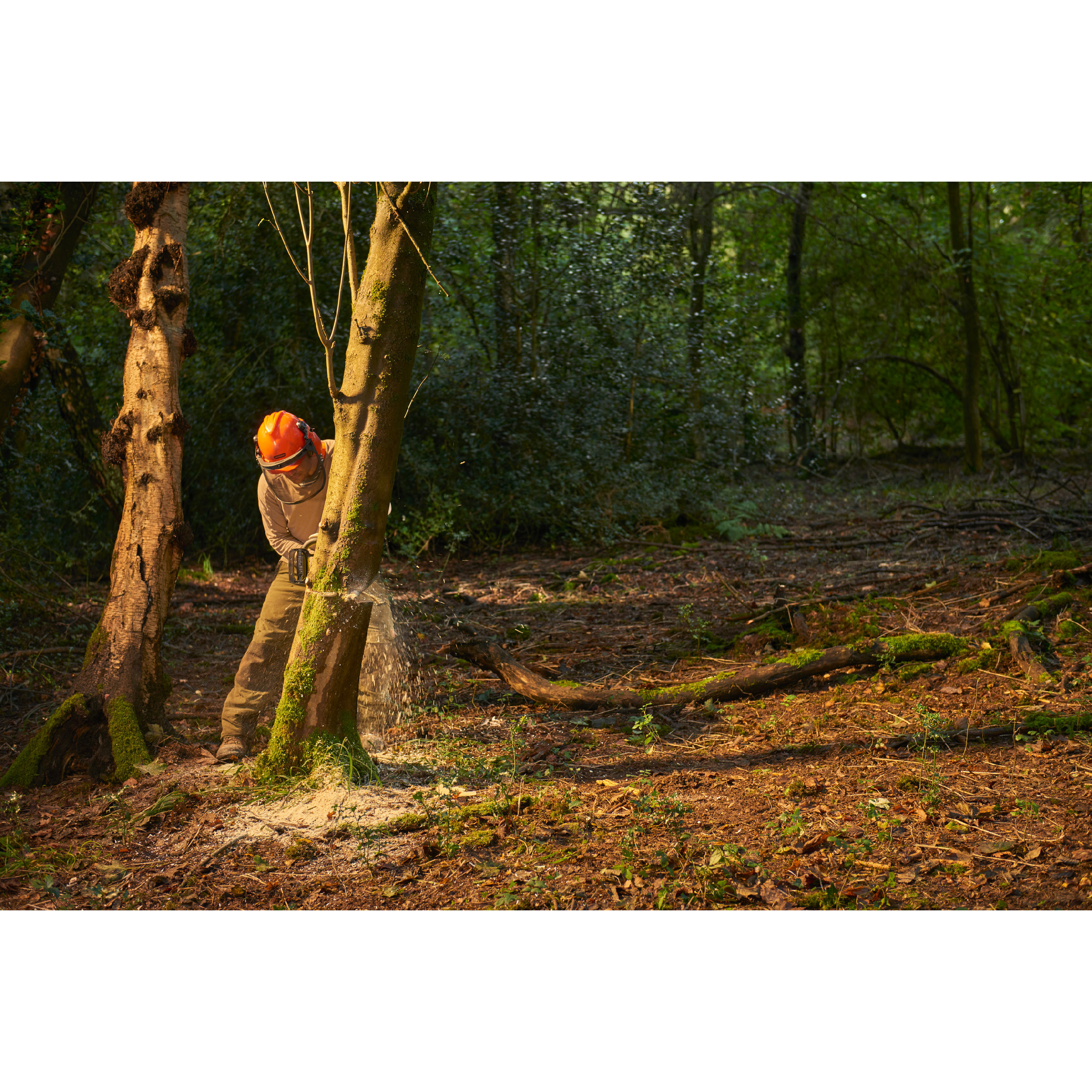 Lišta Oregon® o délce 35 cm s kvalitním řetězem umožňuje řezání středně velkých kmenů, prořezávání lesního porostu, nebo přípravu palivového dřeva na topnou sezónu. Řetěz se napíná jednoduše z boku stroje bez použití nářadí. Automatické mazání řetězu a lišty zajistí plynulé řezání a dlouhou životnost. Pila je vybavena množstvím bezpečnostních prvků, jako je rychlý mechanický a elektronický systém brzdy řetězu a antivibrační systém pro zajištění maximální bezpečnosti obsluhy.