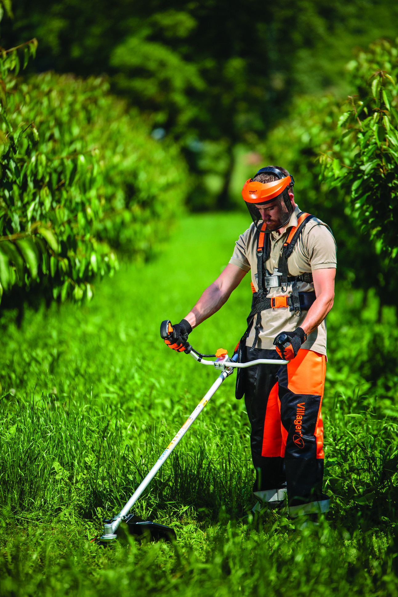 Veškeré ovládací prvky křovinořezu jsou snadno dostupné díky umístění na hliníkové obouruční rukojeti ve formě řídítek, kterou lze univerzálně nastavovat, díky čemuž má křovinořez velmi pohodlné a přesné vedení. Křovinořez má pevné madlo z hliníkové trubky, které dokáže odolat vysokému zatížení. Profesionální zádový popruh s perfektním rozložením hmotnosti mezi rameny a hrudníkem a podložka (plovoucí kyčel) s rychloupínacím mechanismem zajišťuje příjemnou manipulaci.