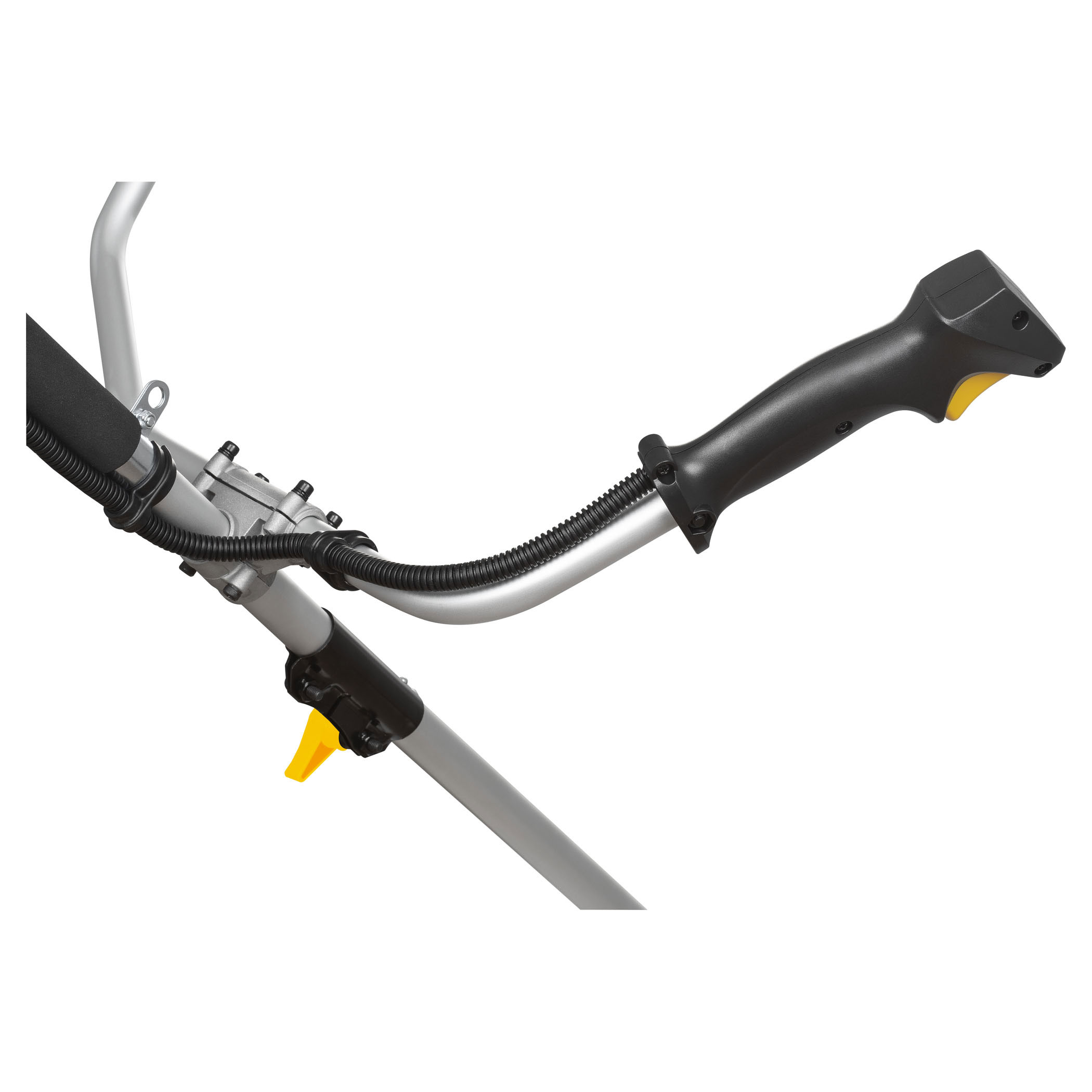 Křovinořez je vybaven strunovou hlavu 330 mm se záběrem sečení až 38 cm. Kromě strunové hlavy je možné nasadit ocelový trojzubý kotouč, který oceníte především při sekání odolnější rostlin nebo mladých náletových dřevin.