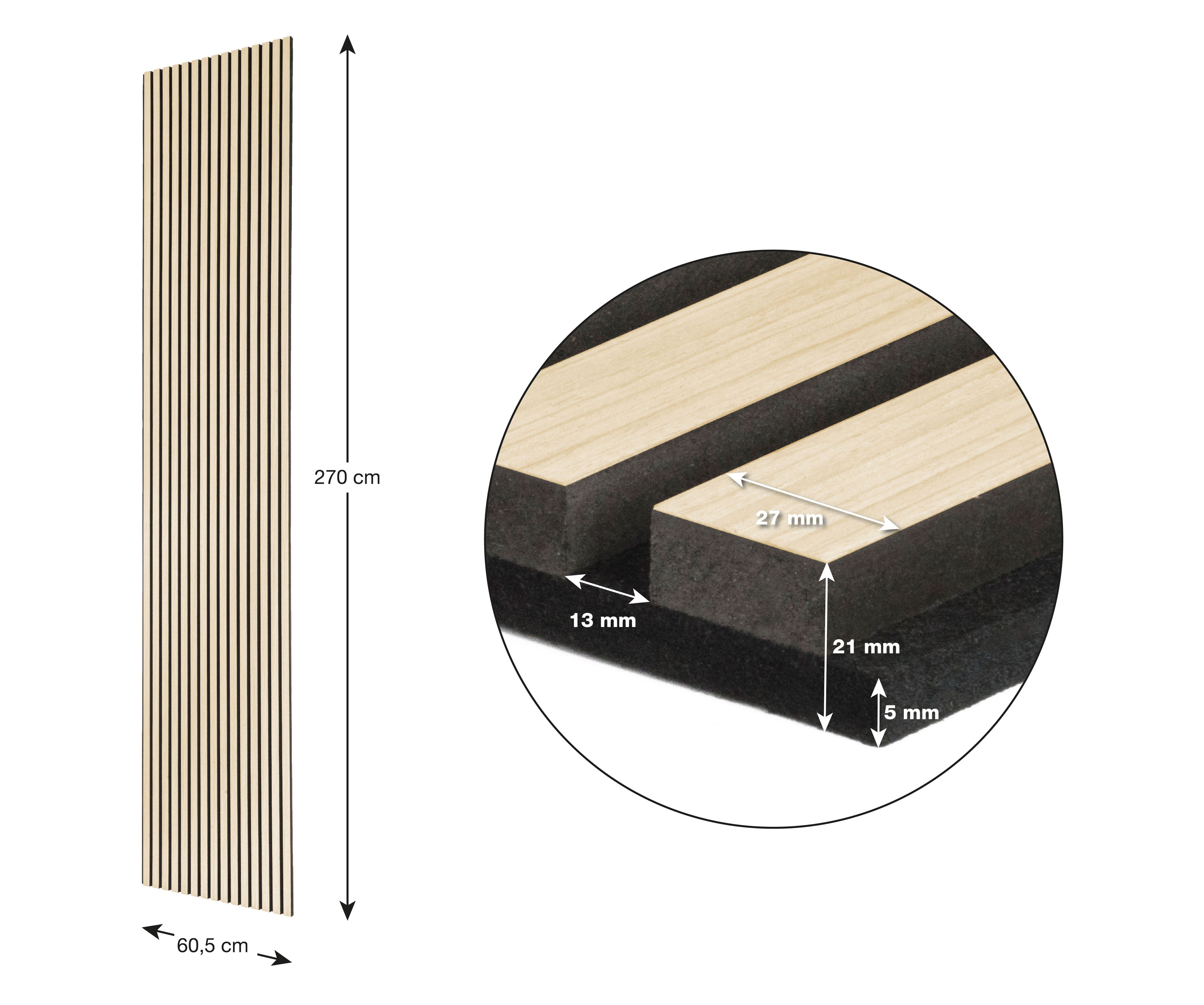 Díky kombinaci polystyrenového vlákna a MDF* materiálu má obklad G21 vynikající akustické vlastnosti. Polystyrénové vlákno je známé pro svou schopnost absorbovat zvuk a snižovat ozvěny v prostoru, zatímco MDF dodává panelu další tuhost a strukturální stabilitu. Akustický obklad G21 spojuje výhody akustické účinnosti, pevnosti a designové variability, což jej činí skvělou volbou pro různé typy prostorů a interiérů.