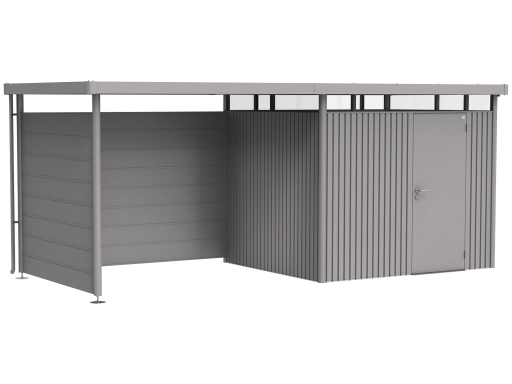Boční stěna se upevňuje na boční stříšku na přístrešek HighLine® H2 a H3 na straně s dešťovým žlabem – volitelně na jedné nebo obou stranách. Můžete si tak vytvořit krytý otevřený prostor a z domku na nářadí vytvořit zahradní domek s pergolou.