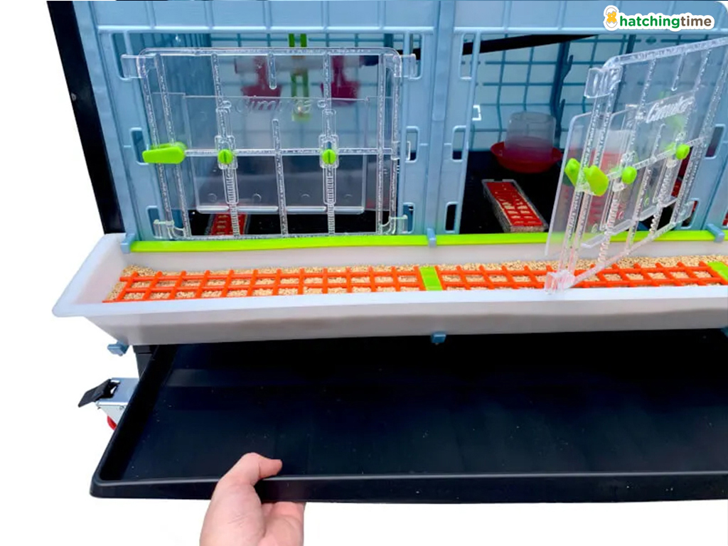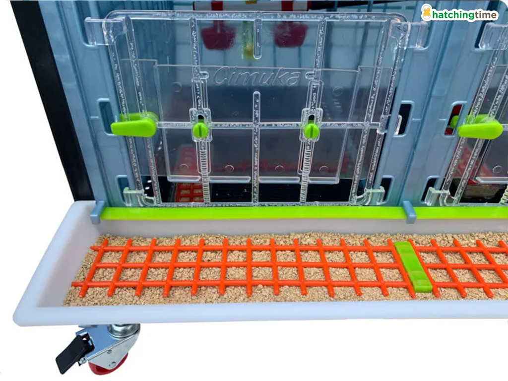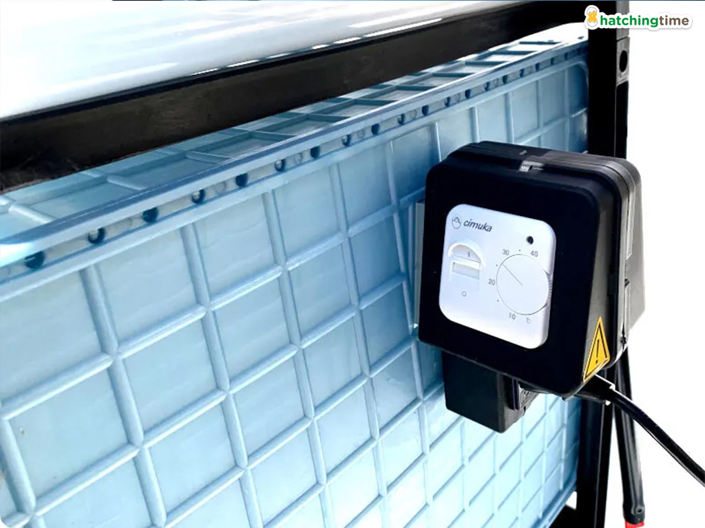 Vylíhnutá mláďata jsou velmi citlivá na teplotní výkyvy. Každé patro této odchovny disponuje vlastní automatickou ohřevnou jednotkou s nastavitelným termostatem v rozmezí 0 až 40 °C. Ochranný kryt topných kabelů eliminuje riziko popálení a zajišťuje rovnoměrné šíření tepla. Jednotka navíc umožňuje instalaci žárovky (do 75 W) pro stabilní světelný režim, který stimuluje aktivitu a růst drůbeže.