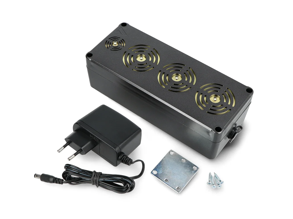 - Vodotěsný design: Odpuzovač je navržen tak, aby odolal vlhkosti a povětrnostním podmínkám, což zajišťuje jeho dlouhou životnost a spolehlivost i při venkovním použití.