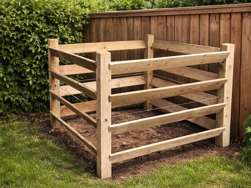 Dřevo kompostéru je ošetřeno tlakovou impregnací proti plísní, přesto ho doporučujeme ošetřit vhodnou povrchovou úpravou pro venkovní dřevo (podle vlastní volby) – tzn. protiplísňový nátěr plus např. lazura. Po tlakové impregnaci se může na povrchu dřeva objevovat zeleno-modrá barva – nejedná se o plíseň, ale pouze o důsledek efektivní impregnace.