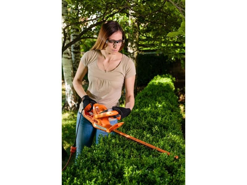 Dvojitá, protiběžná žací lišta o řezné délce 47 cm, vám dovolí upravit porosty až do průměru 20 mm. Pevná zadní rukojeť je vybavena prodlouženou spouští a opatřena pogumováním pro pohodlné stříhání. Samozřejmostí jsou bezpečnostní prvky, jako dvouruční ovládání, elektrická brzda, ochranný štít, který zaručí vaší bezpečnost při manipulaci s plotostřihem a úchyt kabelu, který zabrání jeho poškození.