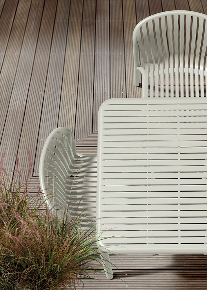 Sedák a opěradlo tvoří prodyšné lamely, které se přirozeně přizpůsobí tvaru těla a poskytují vysoký komfort sezení. Konstrukce zabraňuje hromadění vody, takže židle zůstává stále suchá, snadno se udržuje a je maximálně praktická. S nosností 110 kg a hmotností pouhých 3,85 kg je židle nejen pevná, ale také lehce přenositelná. Výhodou je i možnost stohování, což usnadňuje skladování při sezónním používání.