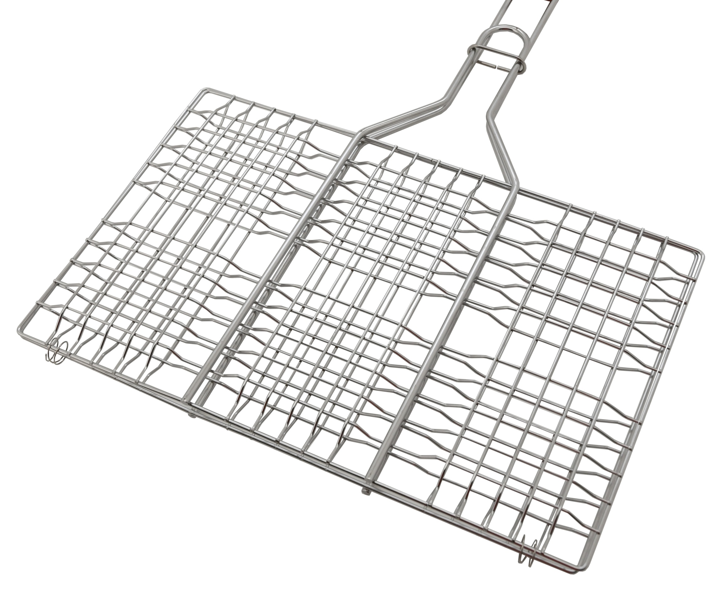 Grilovací mřížka pro zjednodušení manipulace s grilovanými pochutinami. Na mřížku lze umístit větší množství potravin na ploše 35 x 23 cm, lze tak zajistit rovnoměrnou tepelnou přípravu a snadnou manipulaci u několika kusů souběžně. Mřížka je zhotovena z nerezové oceli, mezi samotnou mřížkou a rukojetí je zajišťovací prstenec, který zamezí nechtěnému rozevření. Dřevěná rukojeť ulehčí manipulaci a zvyšuje komfort použití.