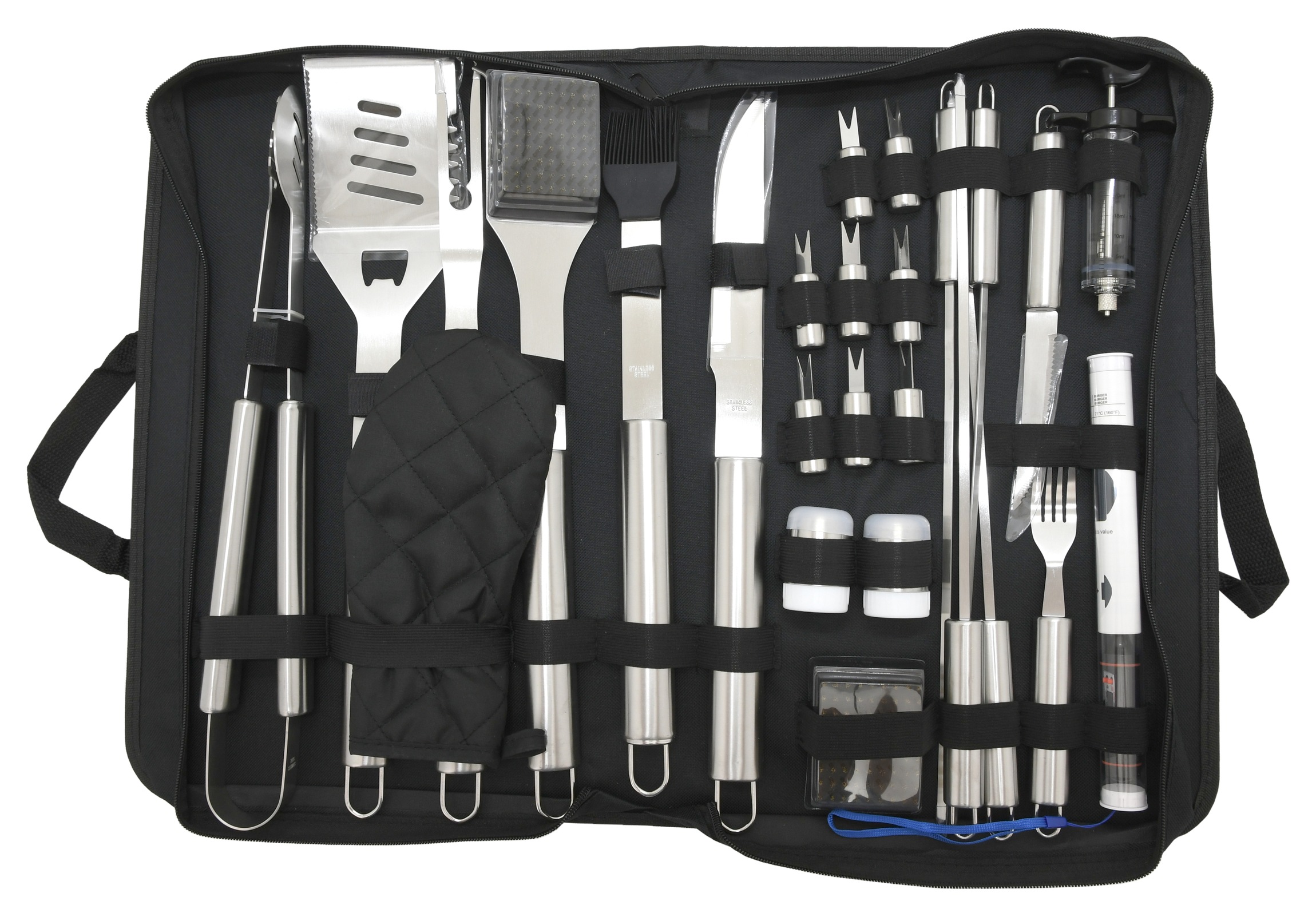 Sada obsahuje veškeré nástroje pro přípravu a konzumaci nejrůznějších pokrmů, ale i následnou údržbu grilu. Veškeré nástroje jsou navíc kvalitně zpracovány z nerezové oceli.