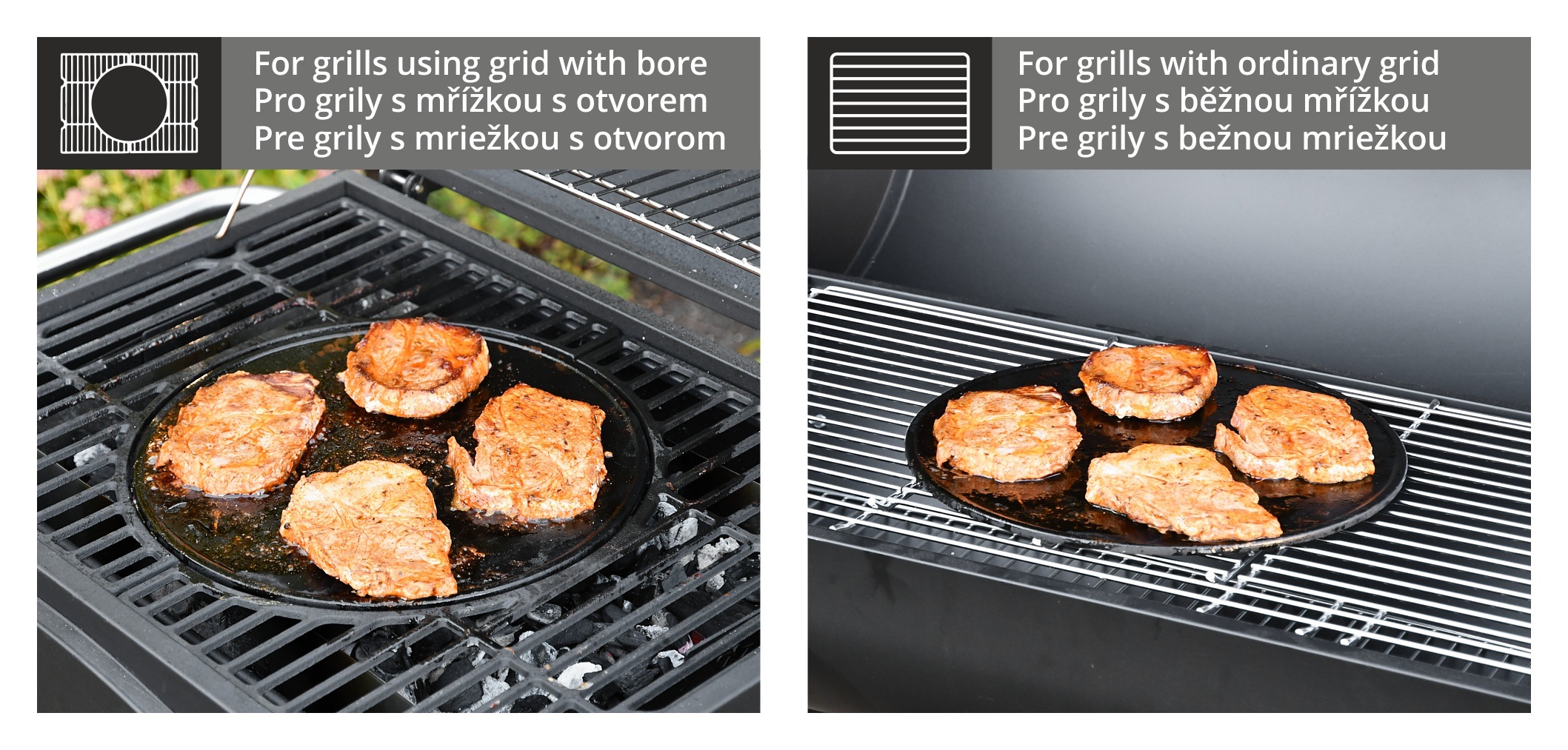 Grilovací litinový plát o průměru 31 cm, určený především pro grilování masitých pokrmů. Plát je určen pro grily Cattara 13040 a 13043 nebo jiné grily s mřížkou opatřenou vhodným otvorem. Plát je také možné volně položit na rošt nebo nad ohniště. Ideální na přípravu masa, ryb a zeleniny.