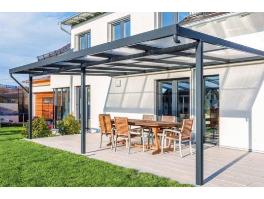 Elegantní, všestranně využitelná, hliníková pergola Terrassendach Premium 3,09 x 3,06 m – antracit, bude skvělým doplňkem vaší zahrady a bude vám poskytovat úkryt před sluncem a ochranu před deštěm. Lze ji využít nejen jako zastínění terasy či verandy, ale také jako přístřešek pro auto (carport). Prémiová hliníková pergola Gutta v nejvyšší kvalitě splňuje i vysoké standardy v oblasti designu.
