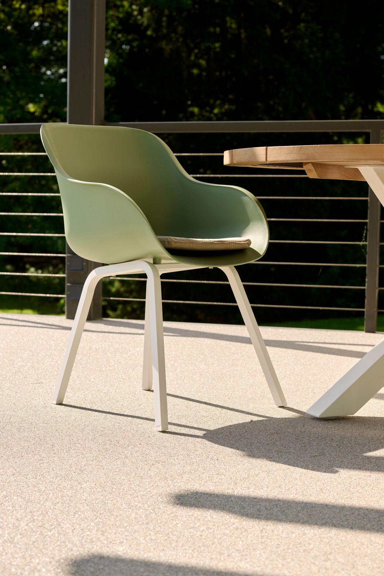 Zahradní jídelní židle SOPHIE Element z kolekce Hartman je vyrobena z vysoce kvalitního plastu (tzv. Resinu) a alu podnože. Je velice pohodlná a nosnost je do 120 kg. Stálobarevný povrch je odolný vůči počasí. Díky matové povrchové úpravě je nábytek příjemný na omak a minimalizuje pocení. Zároveň tato úprava odstraňuje nepříjemné odlesky slunečního světla.