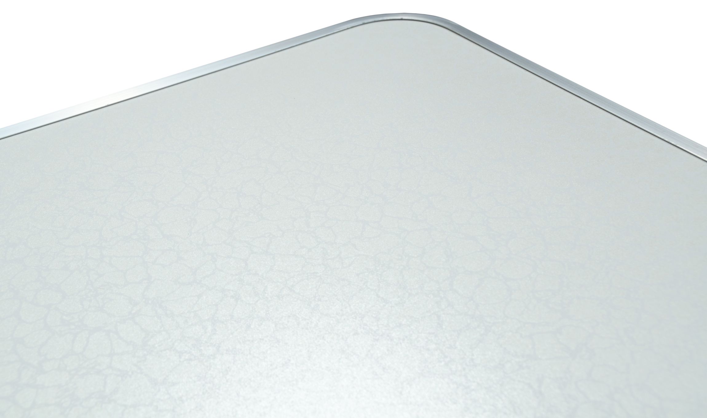 Stůl DOUBLE je skládací, teleskopický stůl z hliníku, s rovnou plochou s bílým vzorem, se čtyřmi skládacími židličkami.