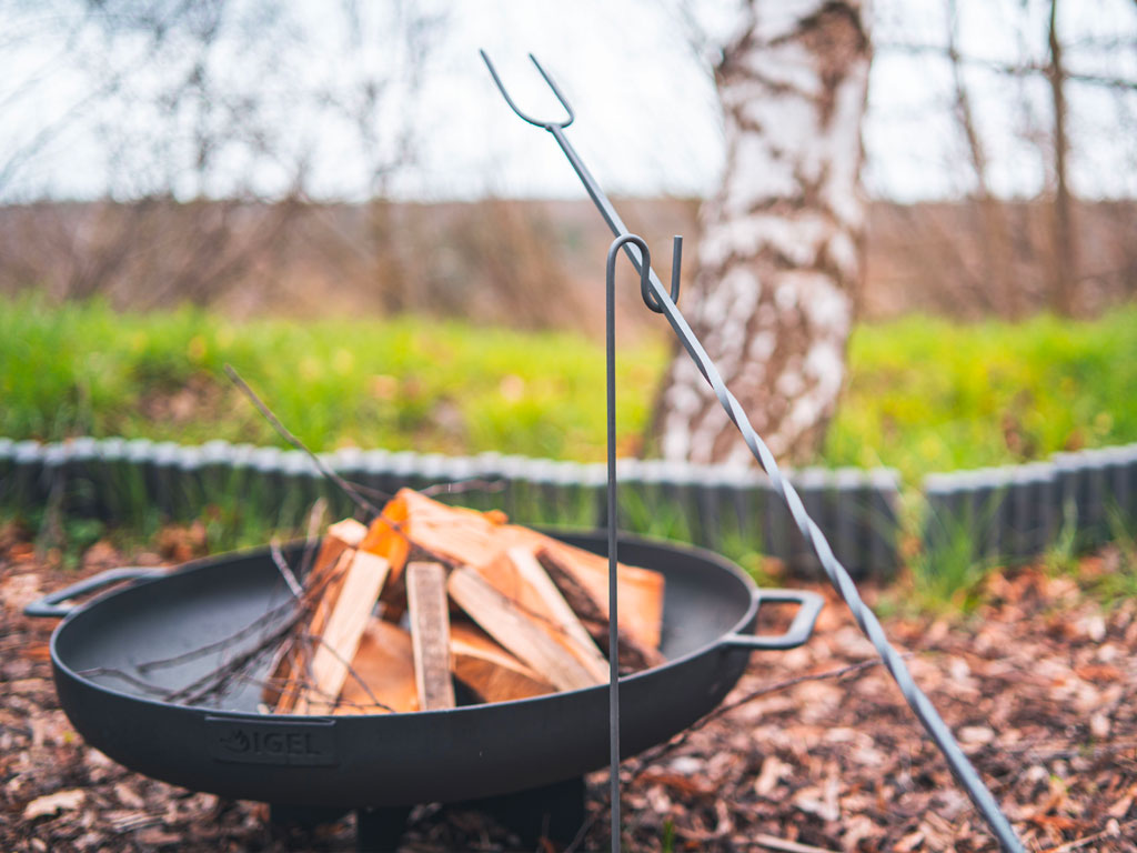 Pro snadnější opékání doporučujeme také ručně kovanou podpěru pro vidlici, kam se vidlice položí do poutka a můžete tak potraviny opékat pozvolna a nejste nuceni stát v přímé blízkosti ohně.