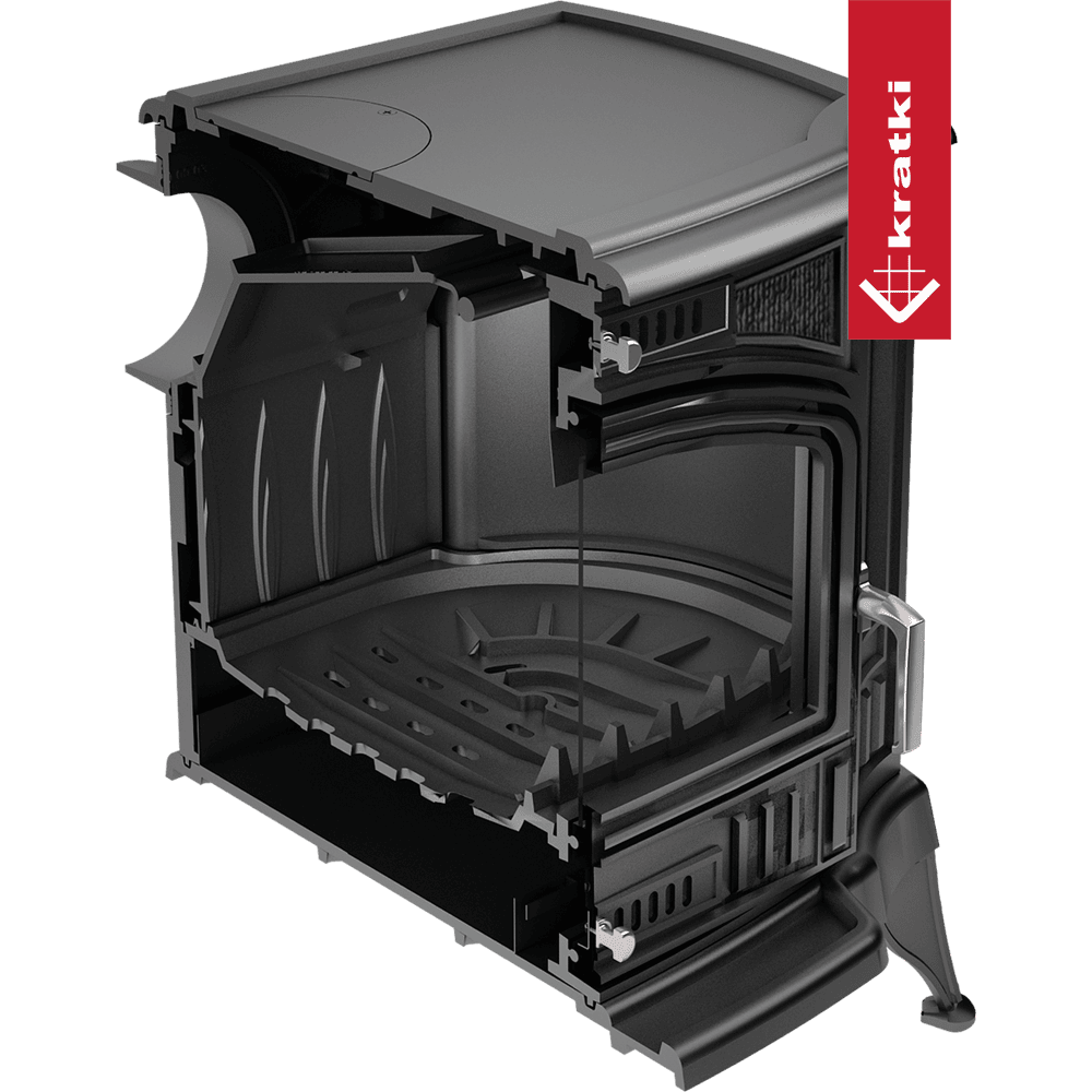 Litinová krbová kamna od výrobce KRATKI se vyznačují vysokou kvalitou, elegantním designem a jednoduchostí používání. Velké prosklení poskytuje úžasný pohled na hořící oheň. Tělo kamen je díky použití kvalitní 8mm litiny odolné vůči vysokým teplotám. Spalování palivových částic je efektivní díky deflektoru, který prodlužuje dráhu spalin. Ruční regulace spalovacího procesu přes popelník. Možnost topení uhlím při dokoupení speciálního košíku na uhlí.