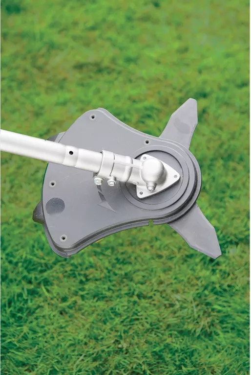 Kotouč Tri‐Arc+™ z tvrzeného kovu zajistí výkonné a přesné sečení. Poloautomatická strunová hlava s úderovým mechanismem, který slouží pro odvíjení struny, je ideálním nástrojem při sekání a dosekávání trávy kolem pevných překážek, např. obrubníků, dlažby, zahradních květináčů atd. Struna totiž poseče trávu na správnou výšku a poté se díky své pružnosti dokáže překážce přizpůsobit a nepoškodit ji. Záběr sečení ocelovým nožem je 260 mm, strunou 380 mm. Hlava je vybavena strunou o průměru 1,5 mm.