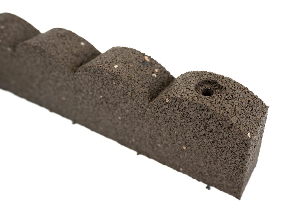 Scalloped je řada ekologických zahradních lemů, která je vyrobena z recyklované pryže, z udržitelného zdroje recyklovaných pneumatik osobních a nákladních automobilů, které se svážejí ze skládky. Gumová drť se sbírá z použitých pneumatik a přeměňuje se na užitečné produkty pro vaši zahradu. Díky pryži jsou lemy pružné, odolné v každém počasí včetně extrémního horka nebo extrémního chladu. Neztrácí ani nemění barvu v průběhu let.
