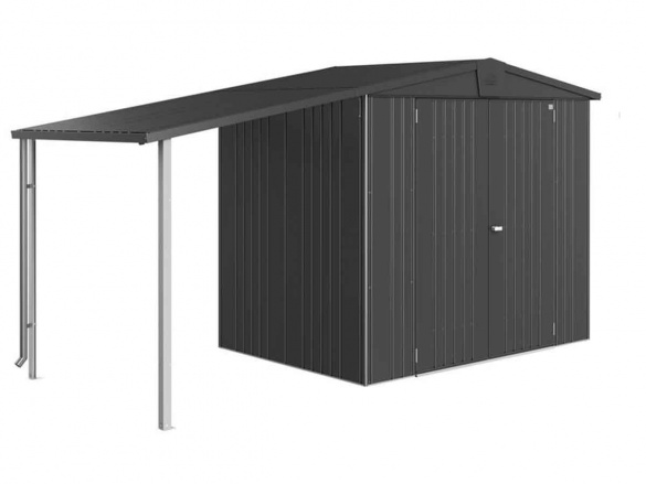 Postranní střecha EUROPA je vyrobena z kvalitních materiálů, které zaručují dlouhou životnost a odolnost vůči povětrnostním vlivům. Tmavě šedá metalíza dodává moderní vzhled, který se skvěle hodí k jakémukoli zahradnímu domku. Díky své robustní konstrukci se nemusíte obávat, že by střecha neunesla i větší zatížení.