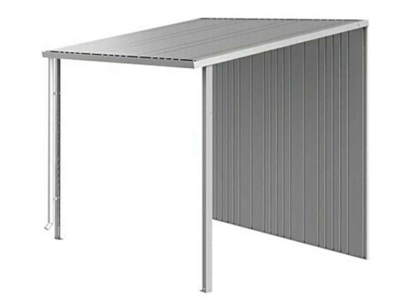 Postranní střecha EUROPA 6, 7 v elegantní stříbrné metalíze nejenže splní svůj praktický účel, ale také dodá vašemu zahradnímu domku moderní vzhled. Tento stylový prvek se skvěle hodí k různým typům zahrad a přístřešků, čímž zajišťuje harmonii a estetiku celého prostoru.