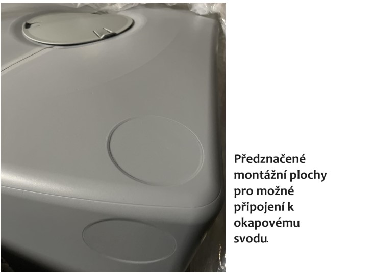 Moderní nádrž na dešťovou vodu Aqua Tower zaujme svým jednoduchým, klasickým designem a určitou sofistikovaností. Nádrž je vyrobena z kvalitního plastu, který je odolný vůči povětrnostním vlivům, nekoroduje a nevybledne. Nádrž má v horní části otvor o průměru 20 cm s víkem. V tomto otvoru můžete použít zahradní čerpadlo. Okap s nádrží lze jednoduše propojit předpřipravenými plochami pomocí spojovacího systému Waterform Icanset, který zakoupíte v našem e-shopu. V přední části je sud ve výšce 35 cm nad zemí osazen otvory s 3/4″ závitem pro napojení kohoutku ITAP(není součástí balení). Nádrž má také dva boční odtoky kousek od země pro napojení hadice na vodu, nebo pro úplné vypuštění nádrže. Konstrukčně je tento typ sudu tzv. foukán, aby byl na rovném povrchu dobře stabilní a tudíž není potřeba podstavce. Povrchová úprava připomíná hladký, šedý beton, kdy příčně odsazené linie jsou souvislé a vrstvené, což dává hlavní strukturu a umožňuje jí perfektně doplnit architekturu moderního domu.