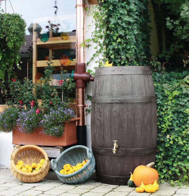 Stylová nádrž na dešťovou vodu BARRIQUE umbra o objemu 250 litrů v dokonalé imitaci dubového sudu může být jednou ze součástí vašeho integrovaného systému úspory vody. Díky dešťové vodě je zalévání zahrady mnohem ekonomičtější a pro rostliny, jak okrasné a užitkové i prospěšnější. Díky obsahu dusíku ve vodě se tento prvek dostává k rostlinám pro ně přirozenou formou. Dešťová voda neobsahuje chlór, žádné soli vápníku a hořčíku, což jsou chemické látky, které způsobují trvalou nebo dočasnou tvrdost vody. I proto je vhodná pro kapkové závlahy, které se nezanášejí a lépe fungují.