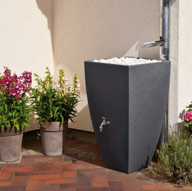 Sud na dešťovou vodu MODENA o objemu 200 litrů v antracitové barvě může být jednou ze součástí vašeho integrovaného systému úspory vody. Díky dešťové vodě je zalévání zahrady mnohem ekonomičtější a pro rostliny, jak okrasné a užitkové i prospěšnější. Díky obsahu dusíku ve vodě se tento prvek dostává k rostlinám pro ně přirozenou formou. Dešťová voda neobsahuje chlór, žádné soli vápníku a hořčíku, což jsou chemické látky, které způsobují trvalou nebo dočasnou tvrdost vody. I proto je vhodná pro kapkové závlahy, které se nezanášejí a lépe fungují.