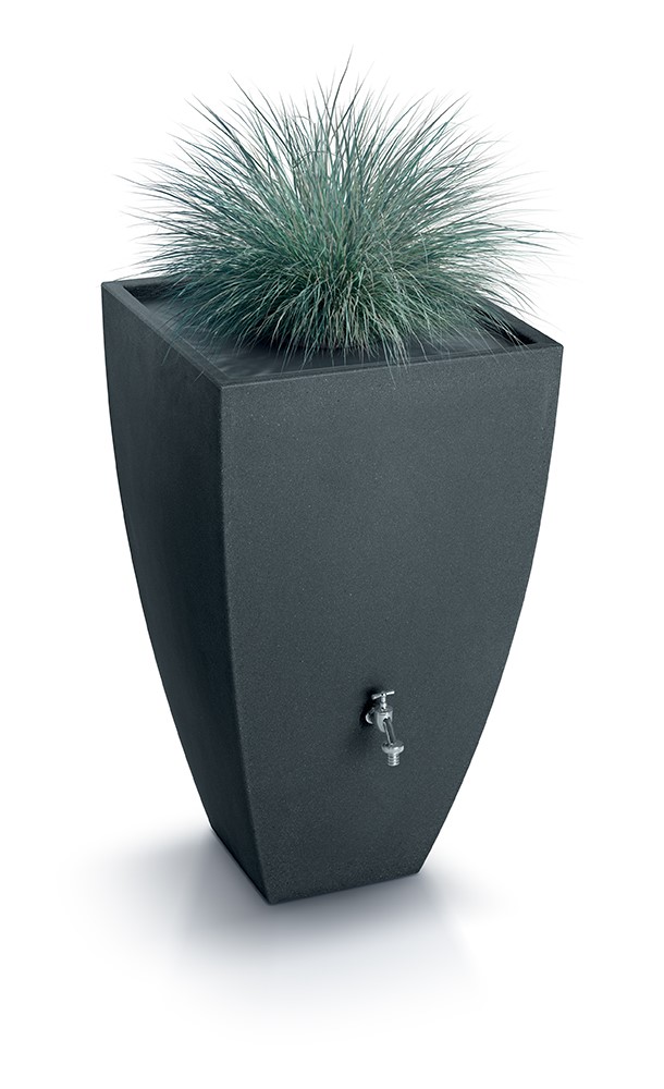 Moderní nádrž na dešťovou vodu Modena ve tvaru květináče je vyrobena z kvalitního plastu, který je odolný vůči povětrnostním vlivům. Největší předností této nádrže na vodu je její elegantní provedení, použité kvalitní materiály a především její praktičnost. V horní části je vkládací deska, ve které je namontován integrovaný filtrační koš. Pro hezčí vzhled lze stélku individuálně ozdobit štěrkem. Nádrž je ve spodní části je osazena otvorem s 3/4" mosazným závitem pro napojení kohoutku ITAP(není součástí balení). Nádrž lze plnit shora přes klasickou dešťovou klapku nebo z boku. Okap s nádrží lze jednoduše propojit pomocí spojovacího systému Waterform Icanset, který zakoupíte v našem e-shopu. Nádrž má také boční odtok kousek od země pro napojení hadice na vodu, nebo pro úplné vypuštění nádrže. Konstrukčně je tento typ sudu tzv. foukán, aby byl na rovném povrchu dobře stabilní a tudíž není potřeba podstavce. Povrchová úprava připomíná hladký beton, takže se snadno přizpůsobí fasádám moderních domů.