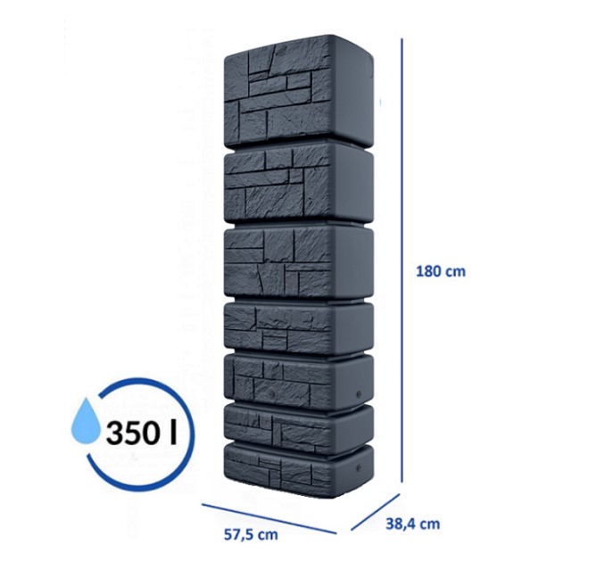 Praktická nádrž na dešťovou vodu TOWER STONE o objemu 350 litrů v antracitové barvě může být jednou ze součástí vašeho integrovaného systému úspory vody. Díky dešťové vodě je zalévání zahrady mnohem ekonomičtější a pro rostliny, jak okrasné a užitkové i prospěšnější. Díky obsahu dusíku ve vodě se tento prvek dostává k rostlinám pro ně přirozenou formou. Dešťová voda neobsahuje chlór, žádné soli vápníku a hořčíku, což jsou chemické látky, které způsobují trvalou nebo dočasnou tvrdost vody. I proto je vhodná pro kapkové závlahy, které se nezanášejí a lépe fungují.