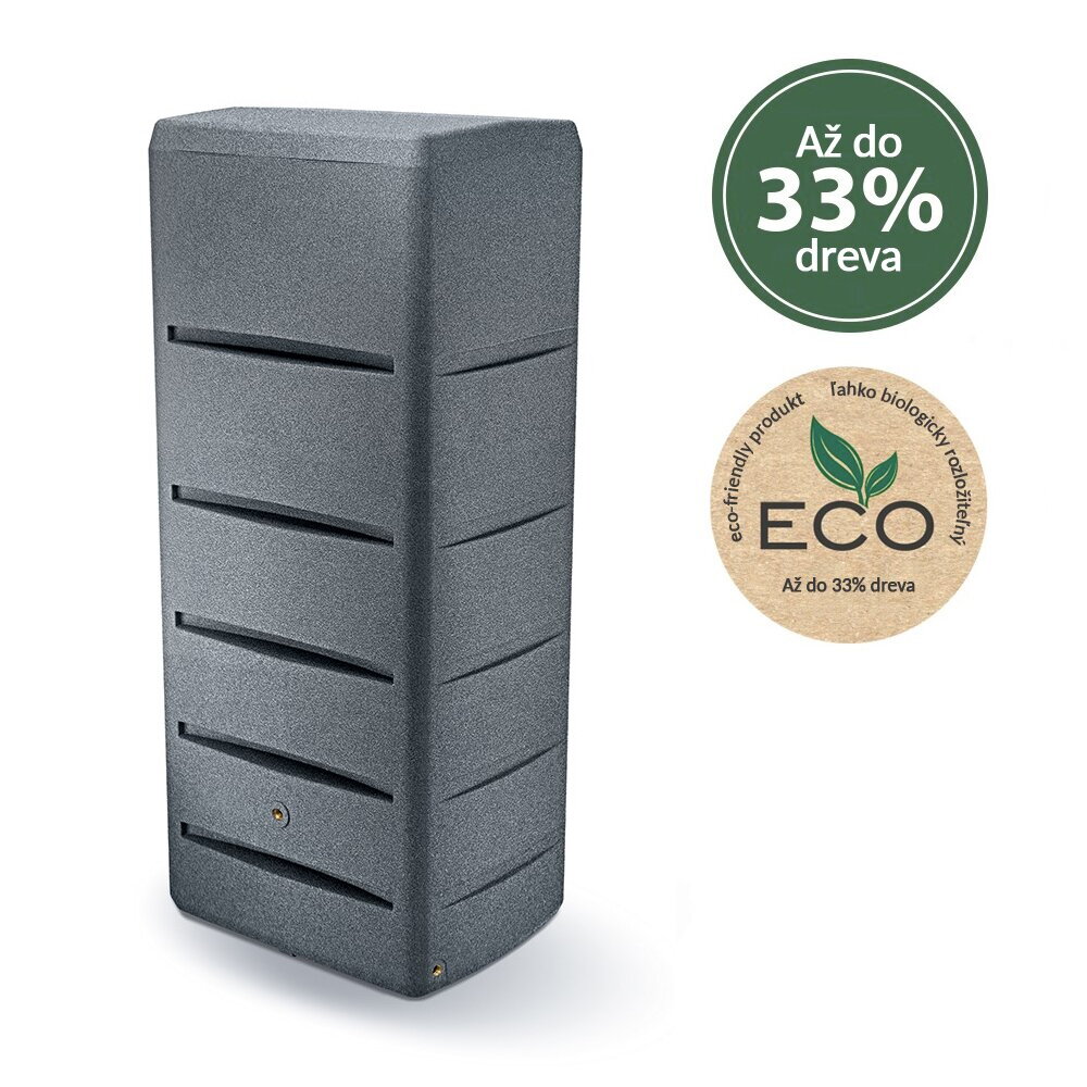 Nádoba na dešťovou vodu je vyrobena z kvalitního plastu, který je odolný vůči povětrnostním vlivům. Největší předností této nádrže na vodu je její elegantní provedení, použité kvalitní materiály a především její praktičnost. Nádrž je ve své spodní části vybavena dvěma otvory se závitem pro výpust vody. Jedna je určena pro napojení kohoutku ITAP (součástí balení), ta kousek od země poté na napojení hadice na vodu.