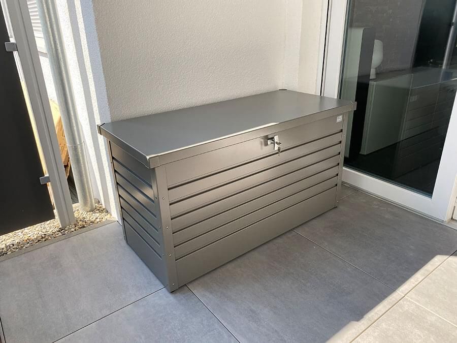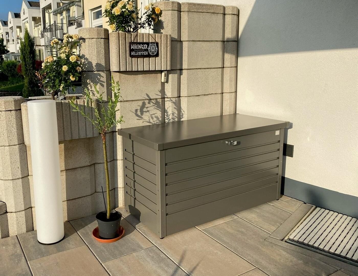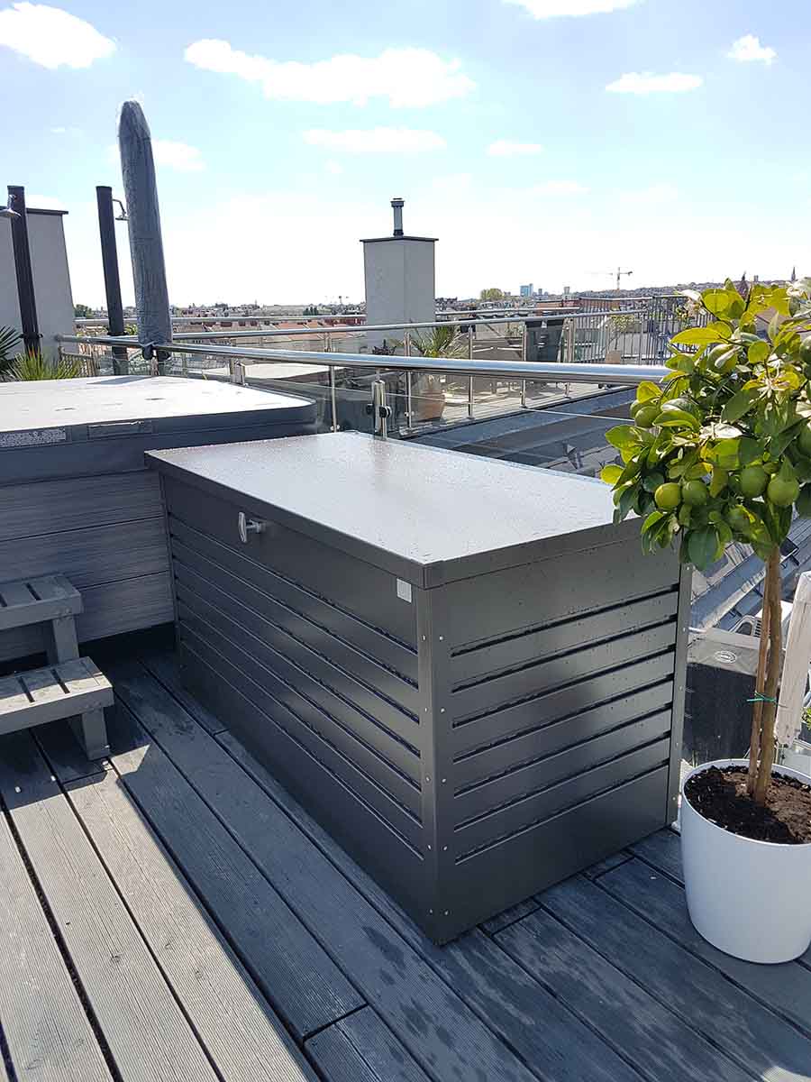 Box můžete nechat po celý rok venku, je voděodolný, s neviditelnou integrovanou ventilací. Díky tomu uskladněné věci nepodléhají plísním. Můžete v nich skladovat i polstry a potahový materiál pro zahradní nábytek. Box můžete umístit na balkon, terasu, k zahradnímu bazénu, do zahradního domku nebo garáže.